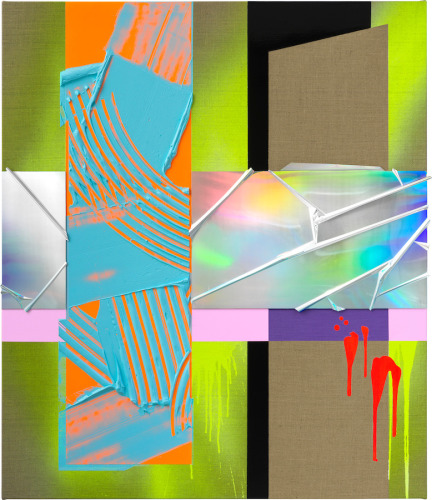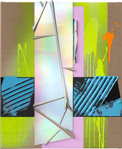 Recently, Reyle has been exploring the process of painting with his artworks comprised of burlap, crumpled mylar, found objects, and neon placed in plexiglass boxes — forcing the viewer to recognize the simultaneous materiality and freeform elements of the piece. This act results in Reyle juxtaposing intensely vivid with soothingly natural colors to create a contrast between archaic atmospheres and artificiality.